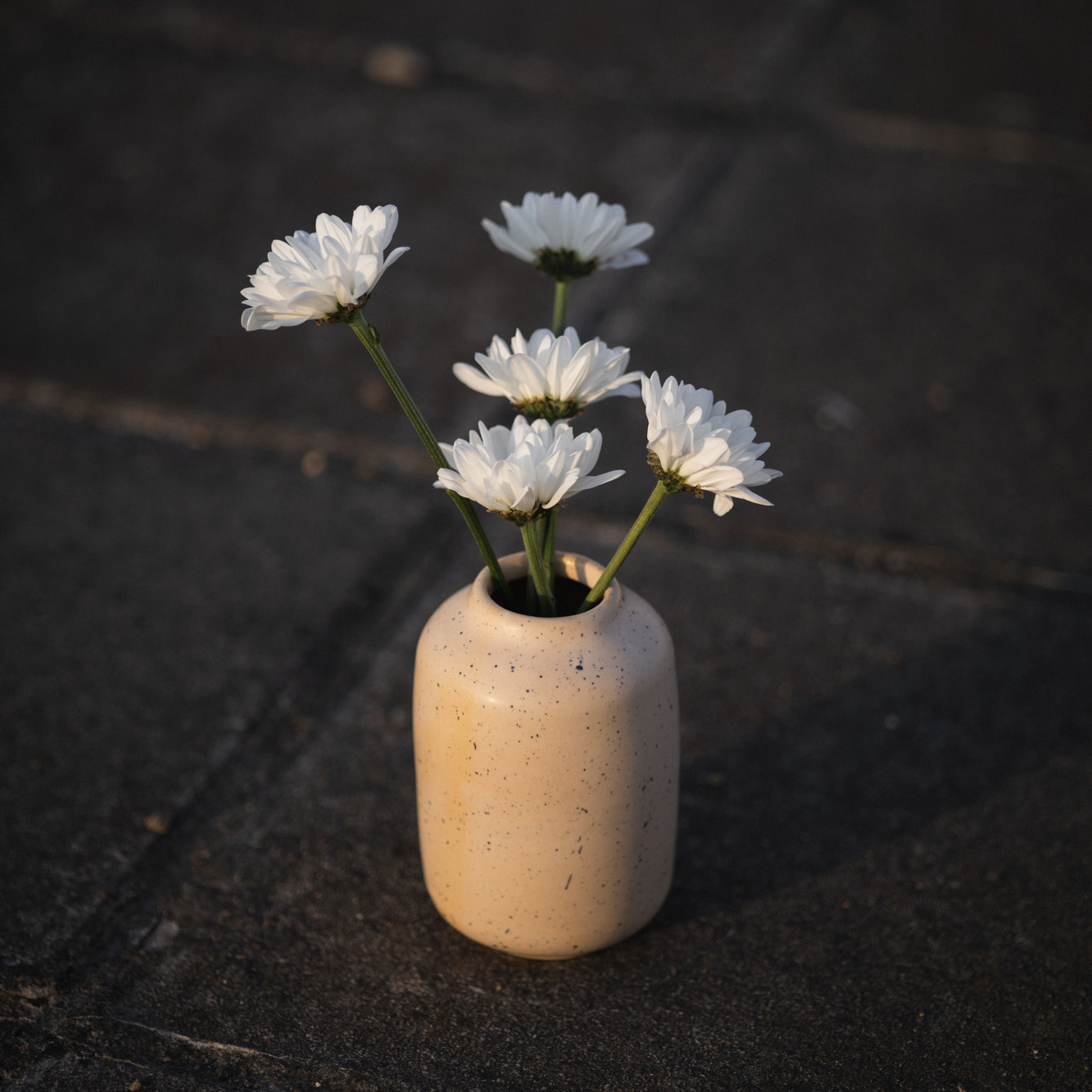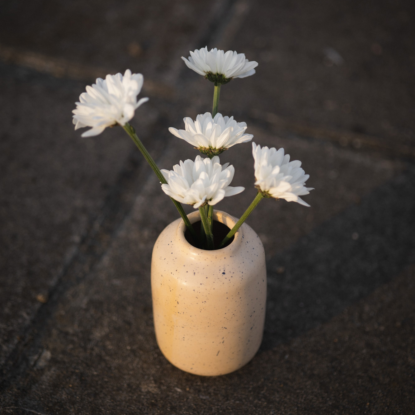 Handmade ceramic vase. Beige clay with dark speckles and a satin-matte glaze.